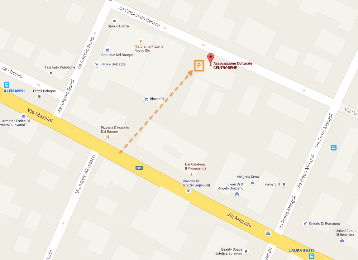 CENTROBENE si trova a Bologna, al numero 1/2 D di Via Cininnato Baruzzi (una parallela della Via Mazzini a senso unico tra Via Mengoli e Via Bondi)