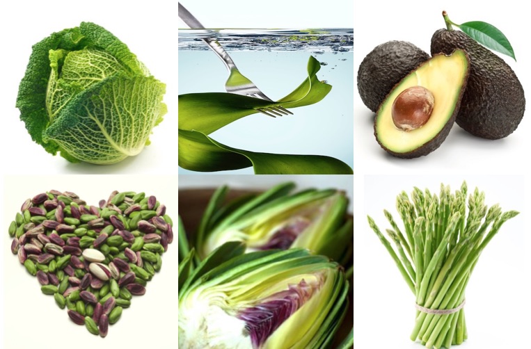 La verdura a foglia verde contiene, oltre che il ferro, anche il calcio, le alghe contengono i minerali, l’avocado i grassi sani e i pistacchi, per esempio aiutano a mantenere equilibrato il livello di zuccheri nel sangue. La natura in questa stagione ci offre diversi prodotti di colore verde: fave, piselli, agretti, tarassaco, rucola, cicoria, broccoli, carciofi, cardi, asparagi….approfittiamone!
